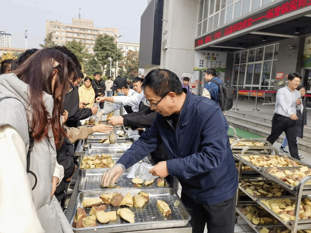 1027日中午,学校在三校区食堂门口开展免费品尝红薯活动。活动时间为27日至29日,共三天,赠完为止
