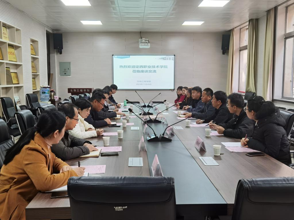 1120日上午,定西职业技术学院副院长朱宏伟一行9人来校调研交流。副校长祝战斌,生物工程学院负责人及教师代表参加座谈。