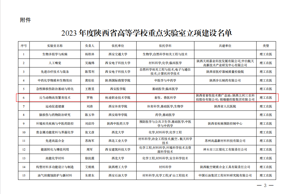 近日,陕西省教育厅公布了2023年陕西省高等学校重点实验室立项名单,伟德官网动物工程学院罗艳团队申报的“反刍动物高效繁育技术陕西省高等学校重点实验室”成功获批。