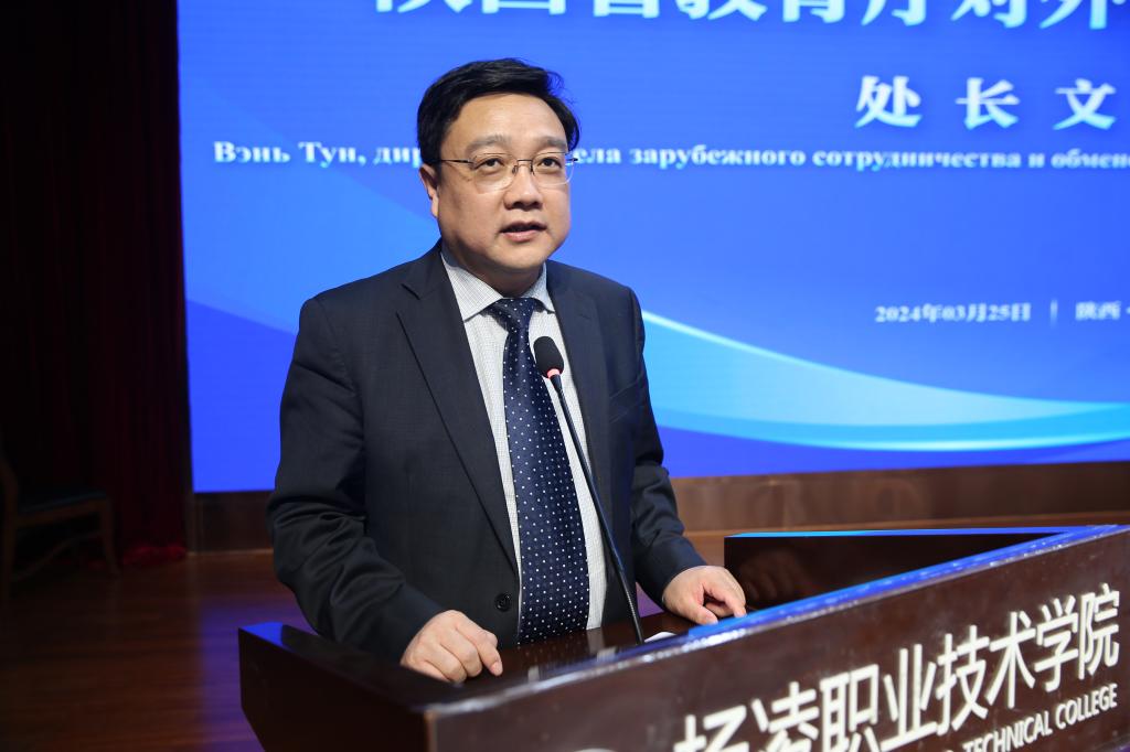 文通在致辞中指出,今年是中俄建交75周年。75年来,中俄两国不断增进互信,拓展合作,传承友好,在经济、科技、文化、教育等领域广泛合作。近年来,陕西依托“丝绸之路大学联盟”、“一带一路”职业教育联盟、上合农业大学联盟等平台,发挥各高校自身专业优势,与俄罗斯在教育合作方面,积极探索,不断实践,通过教师交流、学生互换、合作办学、专业建设、科学研究、技术推广、人才培养等方式,以平等互利、合作共赢为原则,全方位、多层次、多渠道推进中俄高校教育领域卓有成效的务实合作,为双方培养了一大批优秀的国际化人才。他希望以此次巡展为契机,充分交流,建立友谊,互通有无,深化合作,促进发展,为建设更加紧密的中俄友好协作伙伴关系作出积极贡献。