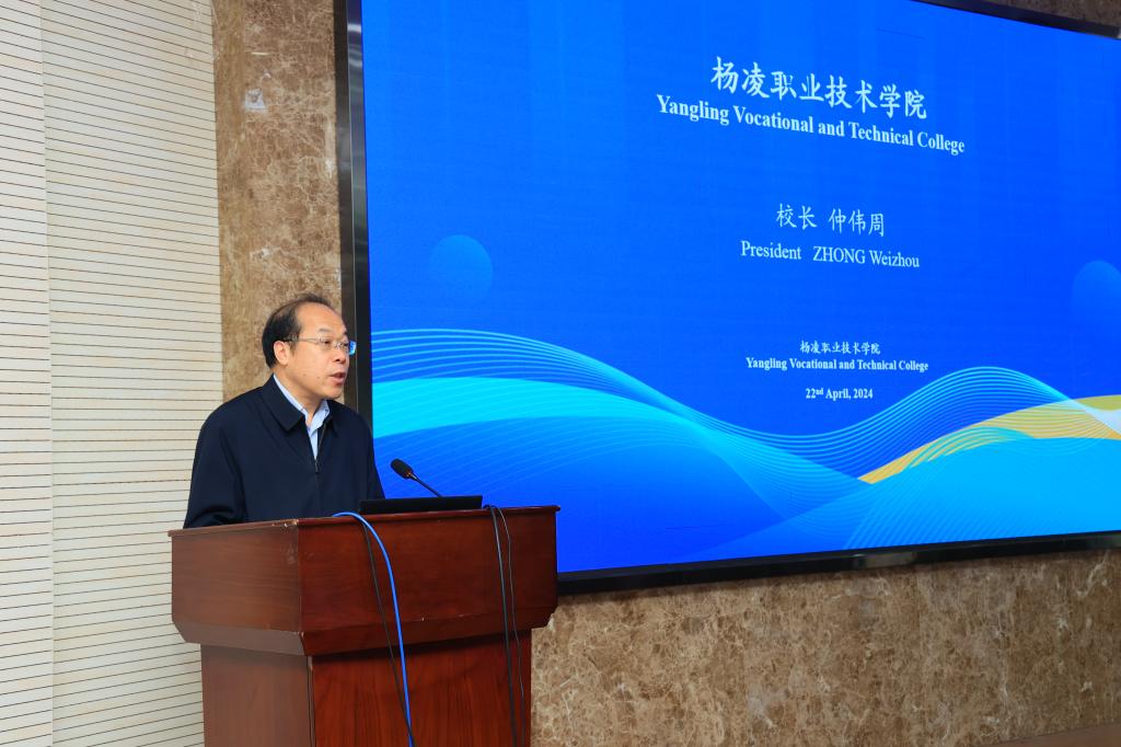 4月22日上午,学校在南校区举办“分享职教标准,促进国际合作”主题活动。校长仲伟周出席活动并讲话,杨凌示范区外事办主任马静、副主任张学明出席活动,2024年发展中国家公共基础设施项目融资与管理研修班官员,以及伟德官网国际合作交流处、水利工程学院、建筑工程学院、交通测绘工程学院和机电工程学院等部门和分院负责人参加活动。