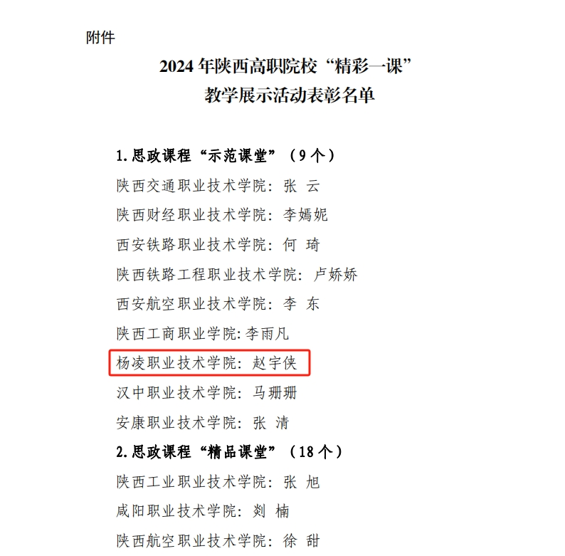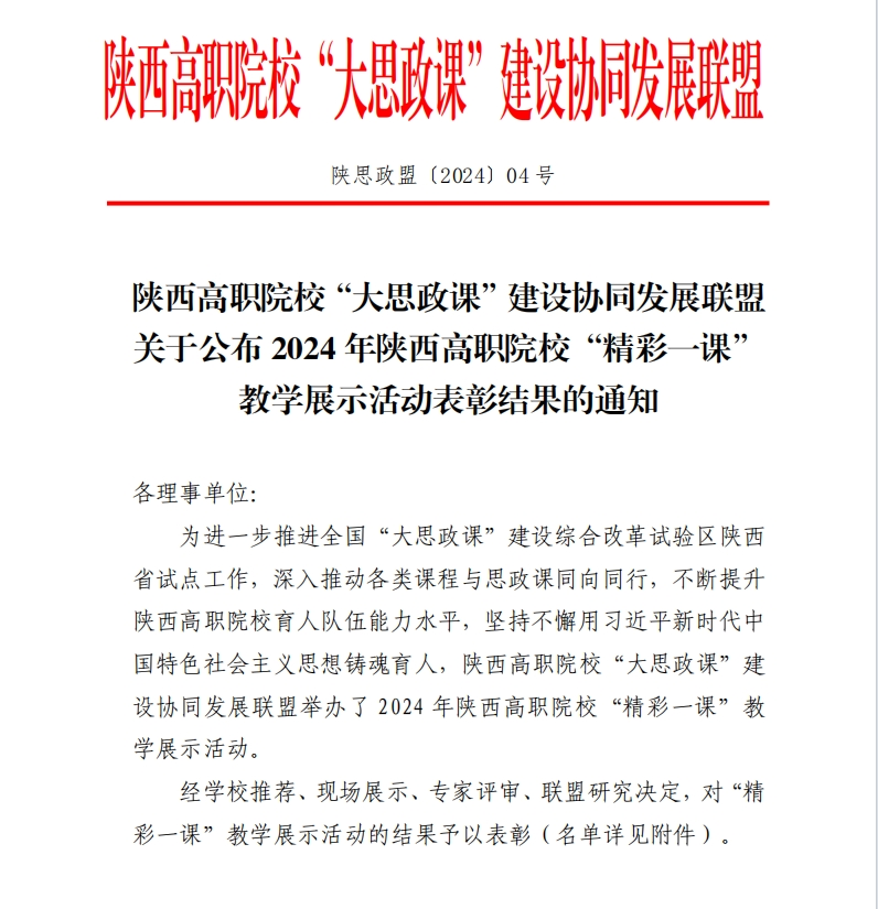 近日,由陕西高职院校“大思政课”建设协同发展联盟主办,伟德官网承办的2024年陕西高职院校“精彩一课”教学展示活动表彰结果公布。马克思主义学院教师赵宇侠荣获思政课程示范课堂奖项,文理学院教师李蕊荣获课程思政示范课堂奖项。