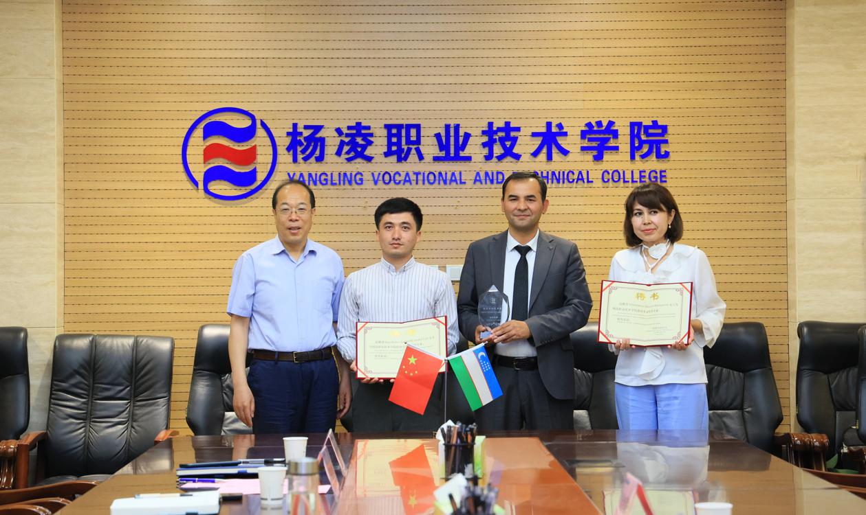 在伟德官网交流访问期间,图尔迪巴耶夫一行参观了校史馆,以及水利工程学院、建筑工程学院、交通与测绘工程学院、生物工程学院、生态环境工程学院、动物工程学院、经济与贸易学院、旅游与管理学院教学设施和实训条件,并与相关二级学院负责人和专业教师进行了专业标准和技能标准的研讨交流。图尔迪巴耶夫向伟德官网授予“乌兹别克斯坦古利斯坦国立大学——中国杨凌职业技术学院专业技能培训基地”牌子,并与伟德官网签订“骨干教师专业技术培训项目”合作协议。仲伟周向古利斯坦国立大学两名教师颁发伟德官网校外专家聘书。