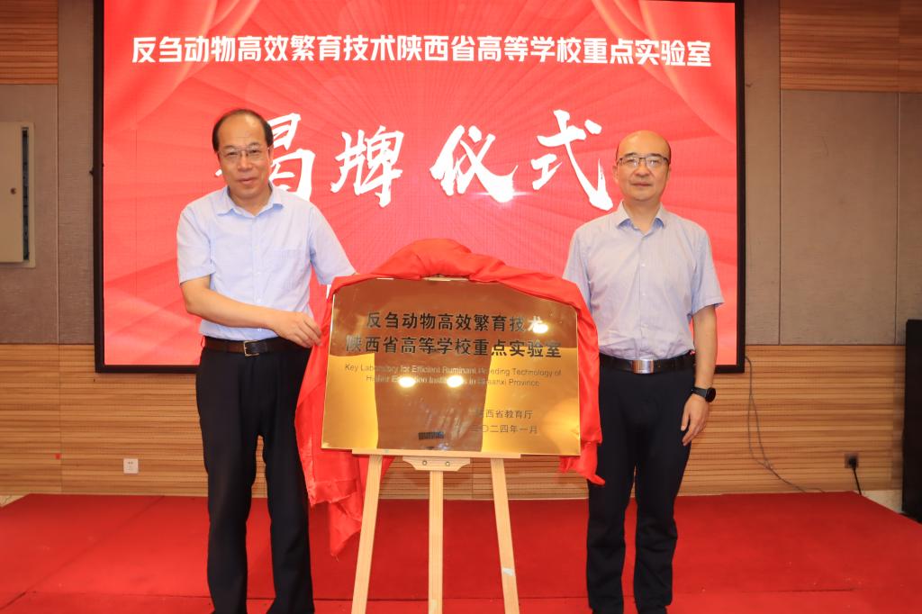 仲伟周表示,重点实验室是职业教育科教融汇、产教融合的有效载体和宽广平台,要坚持加快推进和高质量发展,有效聚集科研力量,整合各方资源,全面提升学校科技创新能力,着力培养高素质畜牧兽医技术技能拔尖人才,促进西部地区畜牧业高质量发展,助力乡村振兴国家战略。随后,双方共同为“反刍动物高效繁育技术陕西省高等学校重点实验室”揭牌,并为重点实验室学术委员会专家、实验室主任及学术带头人颁发聘书。