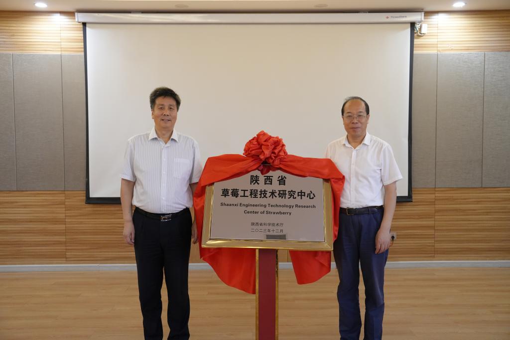 郭杰、仲伟周共同为陕西省草莓工程技术研究中心揭牌
