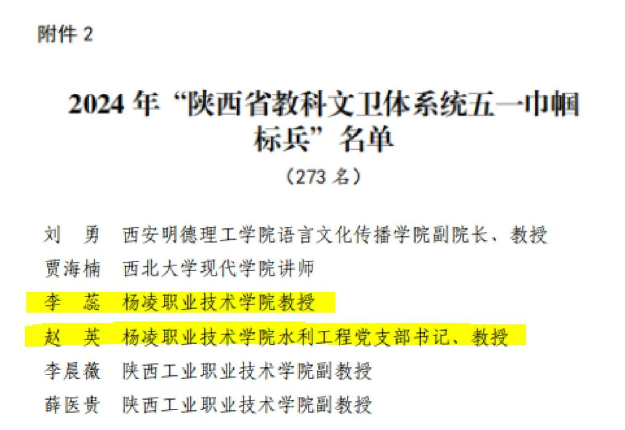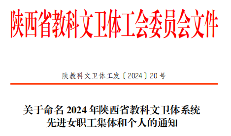 近日,陕西省教科文卫体工会委员会命名表彰了2024年陕西省教科文卫体系统“五一巾帼标兵岗”和“五一巾帼标兵”。伟德官网经济与贸易学院经济管理教研室获“五一巾帼标兵岗”称号,文理学院教师李蕊和水利工程学院教师赵英获“五一巾帼标兵”称号。