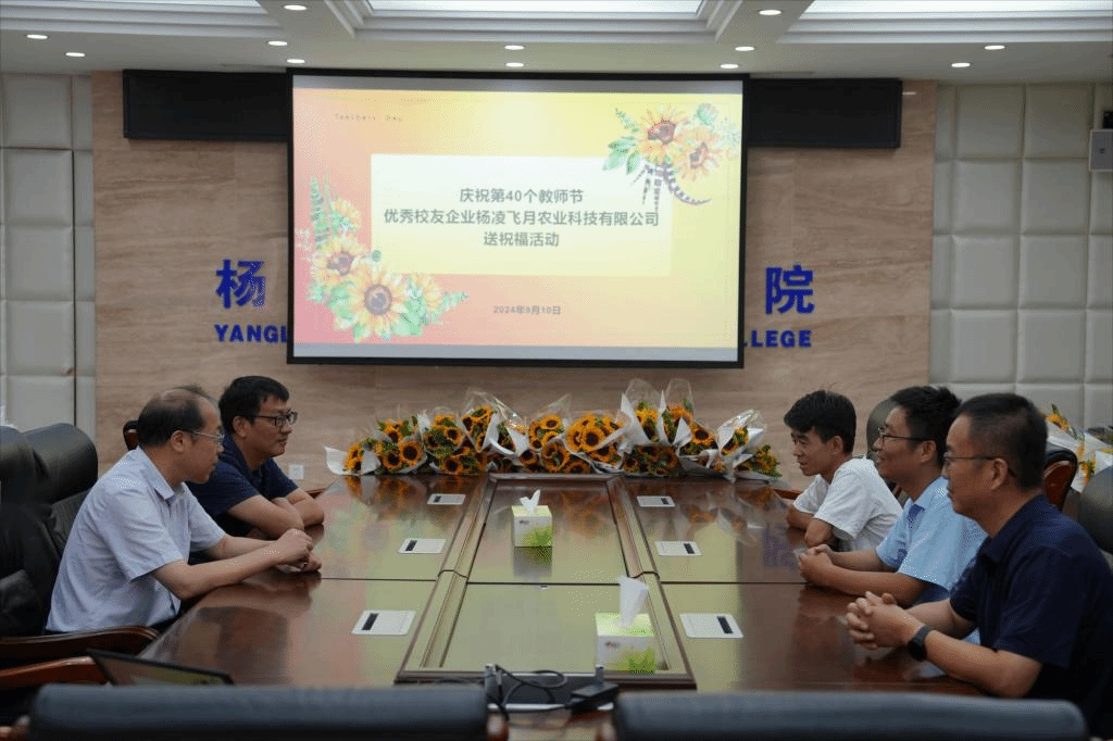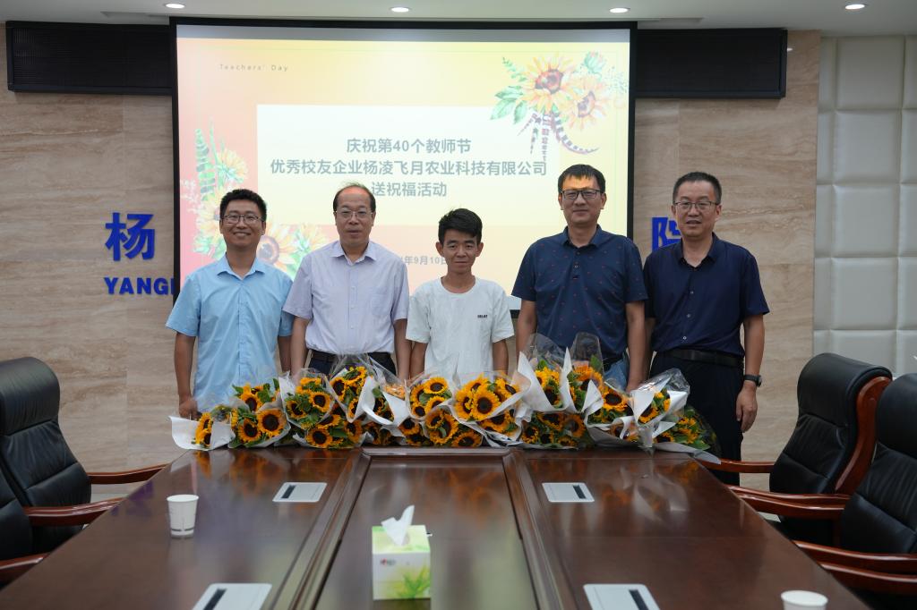 9月10日上午,伟德官网校友、杨凌飞月农业科技有限公司总经理上官蒙飞专程返校,为母校送上教师节鲜花。校长仲伟周、副校长蒋平江亲切接见了上官蒙飞一行,并与校友进行座谈。人事教师处负责人,生物工程学院教师代表参加座谈。