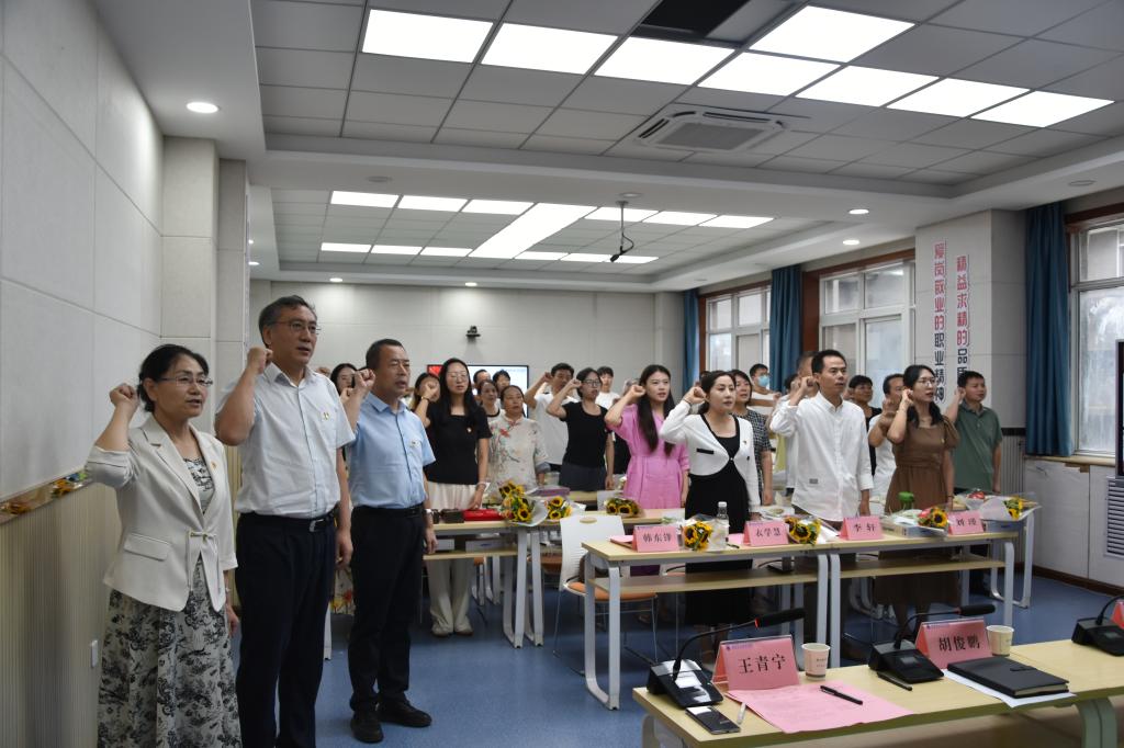 会上,韩明军、胡俊鹏与生态环境工程学院教师共同宣读人民教师誓词,铿锵有力的铮铮誓言,朝气蓬勃的教师队伍,充分展示教职工为党育人,为国育才的信心和决心。