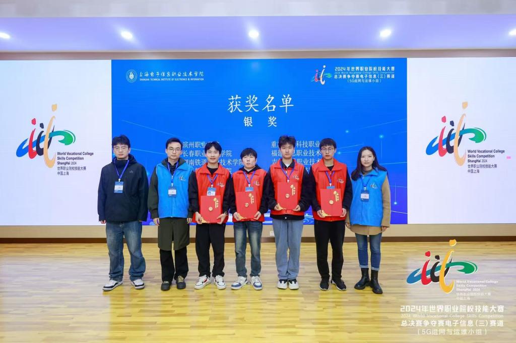 10月25日至28日,2024年世界职业院校技能大赛总决赛争夺赛电子信息(三)赛道“5G组网与运维”赛项在上海市上海电子信息职业技术学院举办,共有来自全国31个省、市、自治区的61支参赛队伍同台竞技。伟德官网信息工程学院樊勇杰、南疆、陈维浩、杨光照组成的学生团队,凭借着超强的心理素质和扎实的专业技能,荣获该赛项银奖。