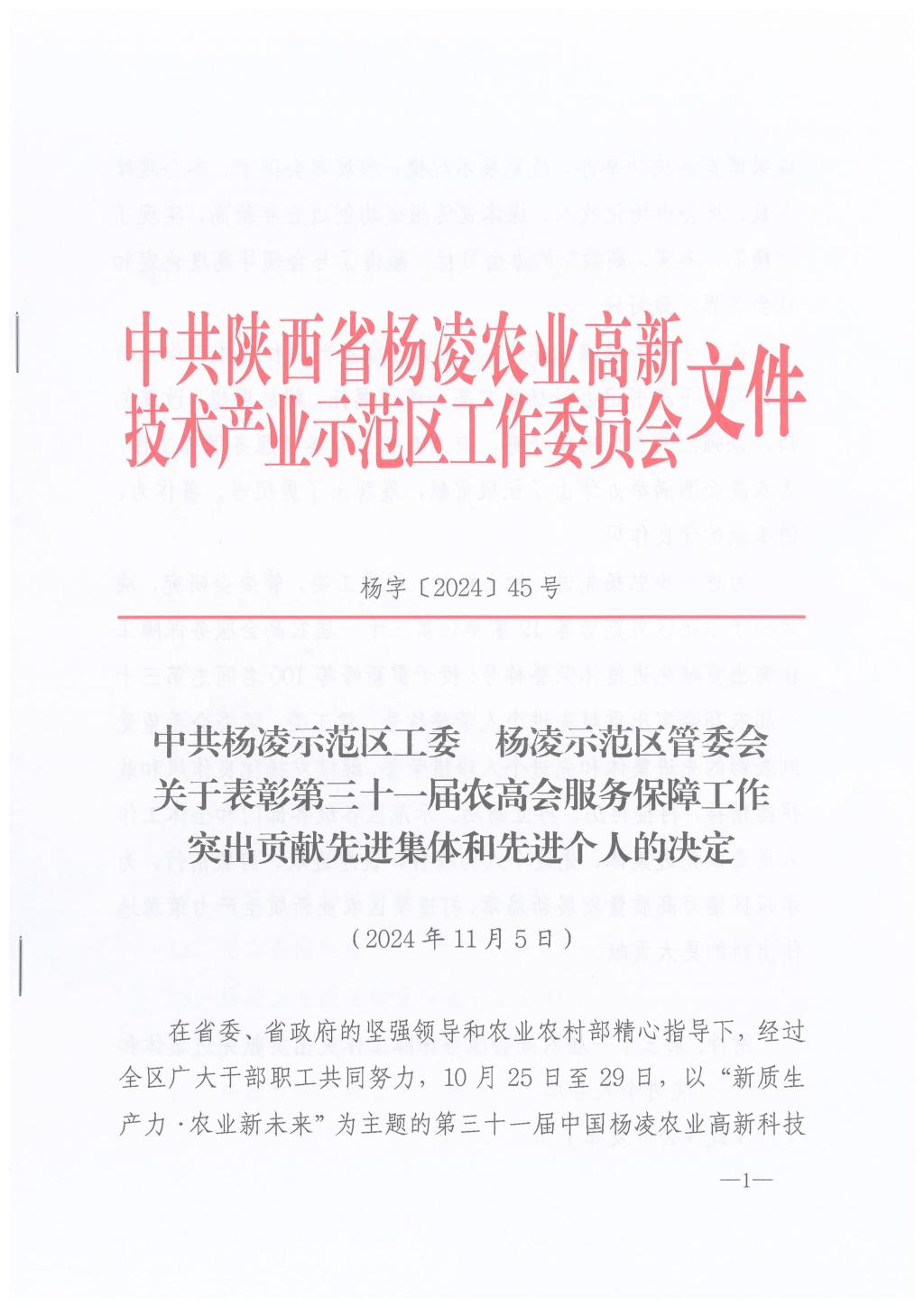 学校牢记习近平总书记关于办好杨凌农高会重要指示精神,以强烈的责任感使命感,精心设计,高效组织,发挥涉农院校为农服务的责任担当,充分展示了建校90周年的科技成果,为农高会圆满举办作出了积极贡献,展现了勇担当、善作为、讲奉献的优良作风。学校将以此为契机,继续发扬优良作风,奋勇拼搏,再接再厉,再立新功,为谱写高质量发展新篇章、打造旱区农业新质生产力策源地作出新的更大贡献。