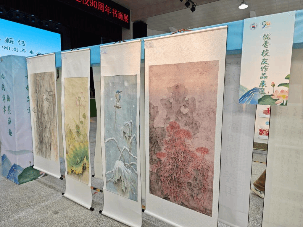 本次书画展共展出教职工作品14件,优秀校友作品25件,学生作品93件。展览作品琳琅满目,风格各异,既有传统书法的韵味,又有现代绘画的创新,每一幅作品都抒发了对党的热爱、对学校的深情以及对荣校的真挚情感,也表达了对学校未来发展的美好祝愿。展览现场吸引了众多爱好书画的师生驻足欣赏,交流品鉴。