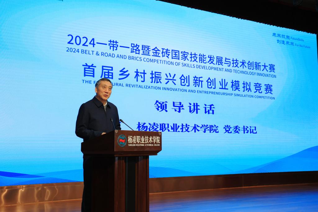开幕式上,金砖国家技能发展与技术创新大赛组委会执委会主席刘振英作视频致辞,陕西省教育厅对外合作与交流处副处长张亮、金砖国家技能发展与技术创新大赛组委会执委会竞赛办公室国际处处长杜红杰、首届乡村振兴创新创业模拟竞赛专家组组长薛永基分别讲话。