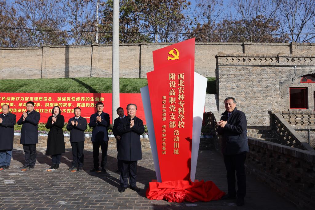 追溯红色足迹,赓续红色血脉。11月27日上午,西北农林专科学校附设高职党支部活动旧址揭牌仪式在学校农林综合实训基地举行。省委教育工委副书记王海波,杨凌示范区党工委委员、管委会副主任刘仲山,学校党委书记韩明军、校长仲伟周,省委教育工委组织部部长胡海宁,陕西建工集团股份有限公司工程六部党总支书记、副总经理余科峰,杨凌示范区党工委宣传部副部长赵燕,西北农林科技大学党委组织部副部长张成凤等出席揭牌仪式。揭牌仪式由学校党委副书记刘瑞明主持。