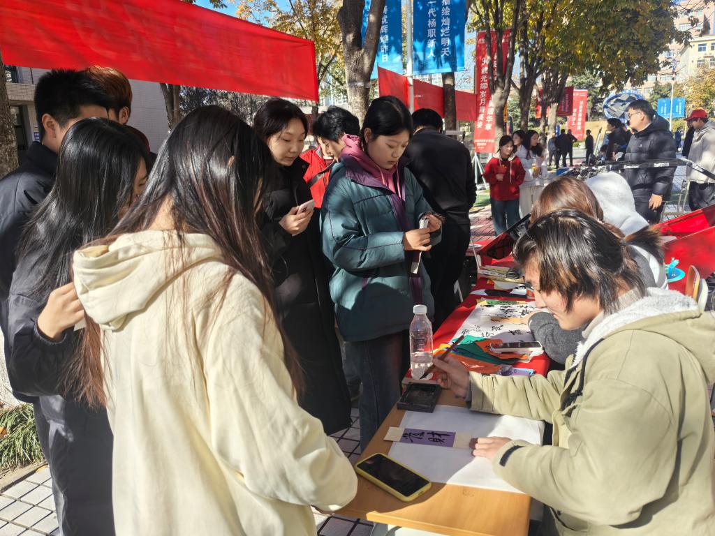 活动内容涵盖歌舞文艺活动、非物质文化遗产体验、鲜花切花展和书画展,活动现场热闹非凡,歌舞表演精彩纷呈,优美的舞姿和动人的歌声展现出青春学子的活力与激情。在非物质文化遗产体验区,漆扇制作等项目让人眼前一亮,各种精美手工艺品散发着独特的魅力,承载着传统文化的精髓。琳琅满目的鲜花品种色彩斑斓,芬芳四溢,师生充分发挥想象力和创造力,动手制作独一无二的花艺作品,现场打卡拍照留念,将活动推向高潮。书画展则为校庆增添了一抹浓郁的艺术气息。一幅幅精美的书法作品或苍劲有力,或飘逸洒脱,展现出中国书法艺术的博大精深。
