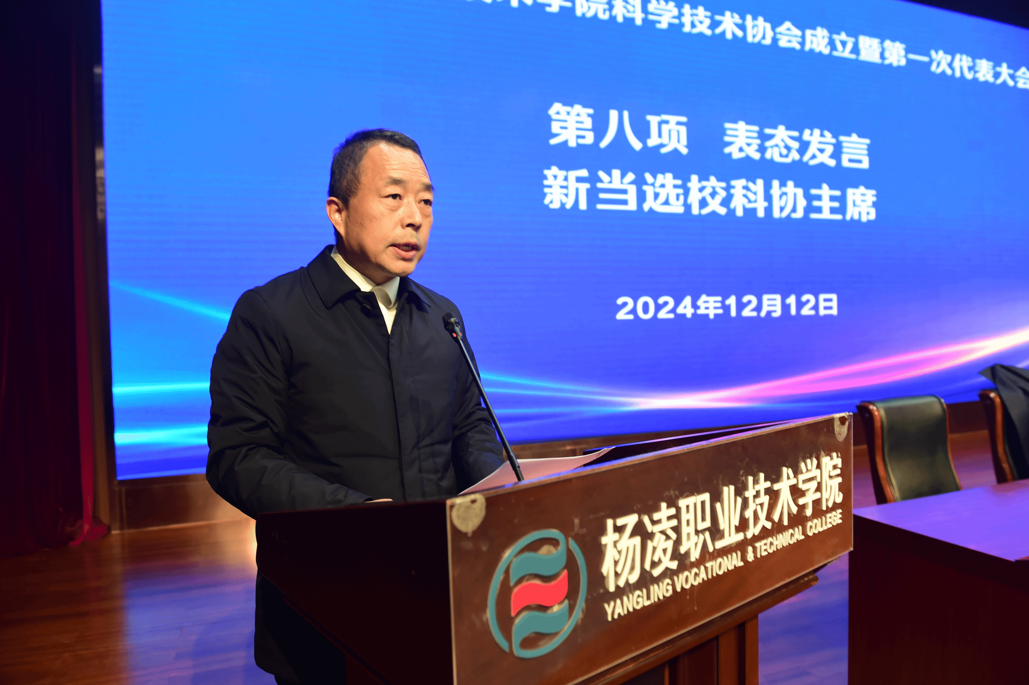 会上,李肇娥和韩明军共同为杨凌职业技术学院科学技术协会揭牌。田世坡宣读了学校科学技术协会成立批复文件。学校科技与教育研究处负责人作筹备工作报告。会议审议通过了《杨凌职业技术学院科学技术协会实施〈中国科学技术协会章程〉细则》,选举产生了第一届委员会委员及领导机构,胡俊鹏当选为科学技术协会主席并作表态发言,冯旭当选为秘书长。