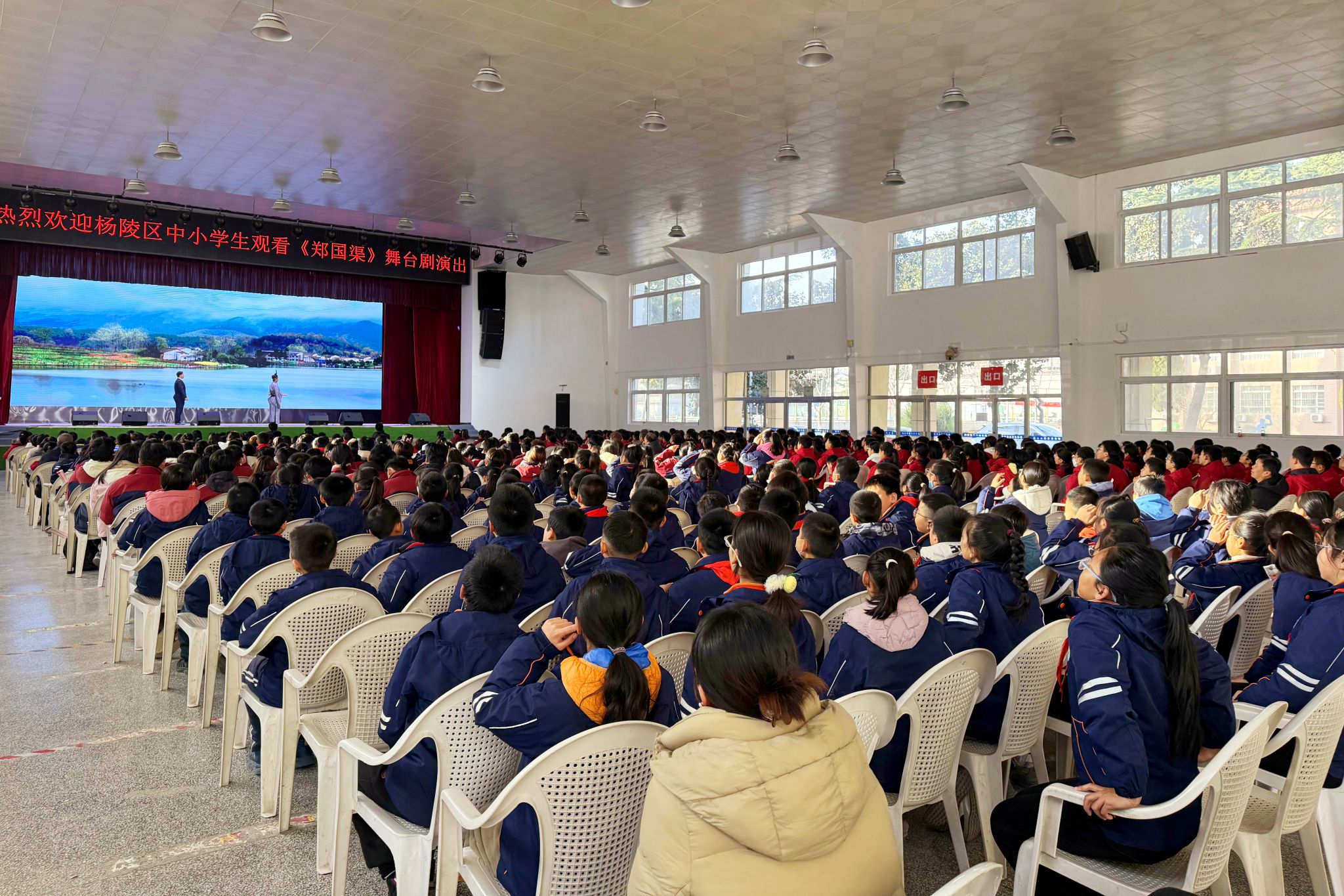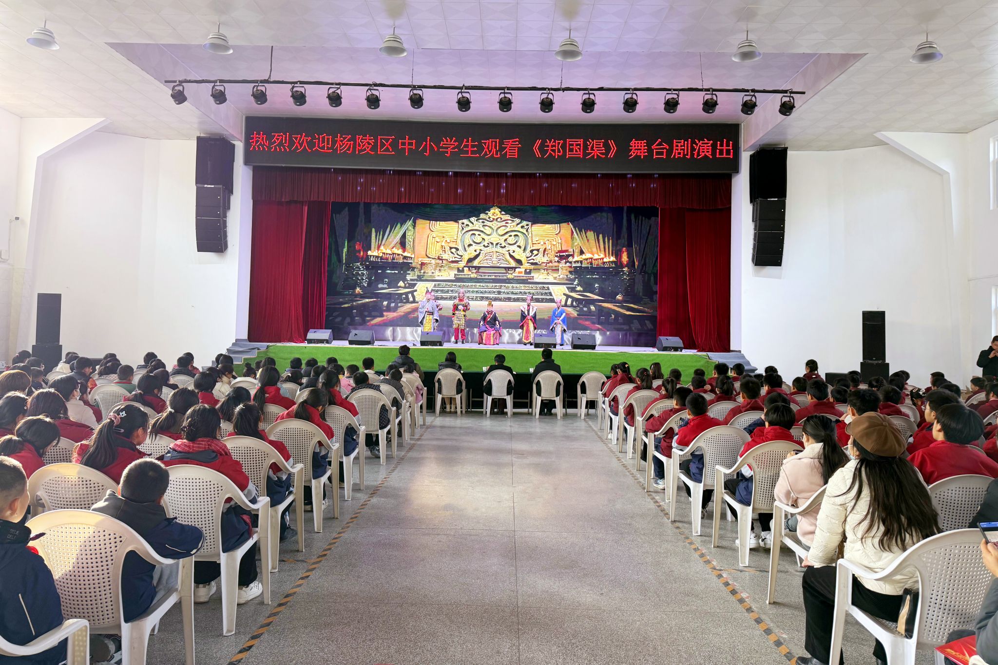 为弘扬中华优秀传统文化,加强大中小学思想政治教育一体化工作,12月13日下午,杨陵区教育局组织杨陵区中小学生来伟德官网集体观看原创舞台剧《郑国渠》。杨陵区教育局局长王珺、副局长秦莉菲,伟德官网马克思主义学院负责人,以及来自杨陵区第一实验学校、张家岗小学、杨陵小学、高新第三小学、职教中心、邰城实验学校、高新初级中学等450余名中小学师生共同观看了演出。