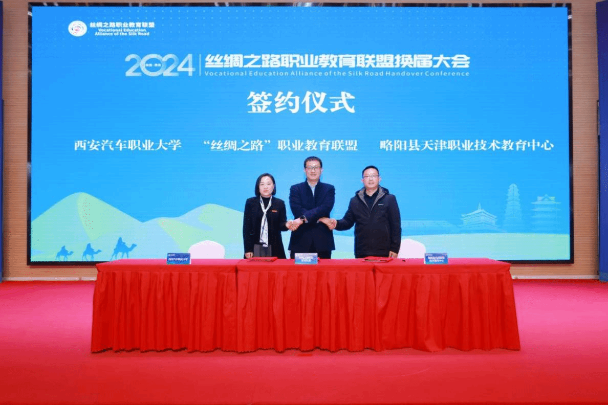 会上,学校当选“丝绸之路”职业教育联盟常务副理事长单位。蒋平江当选“丝绸之路”职业教育联盟常务副理事长,并代表“丝绸之路”职业教育联盟,与西安汽车职业大学、略阳县天津职业技术教育中心签署三方合作协议,共同提升职业教育领域合作水平,建立联盟与两地友好学校关系。