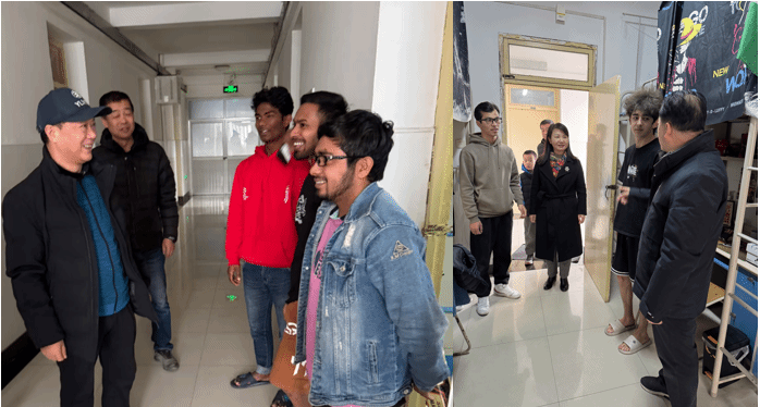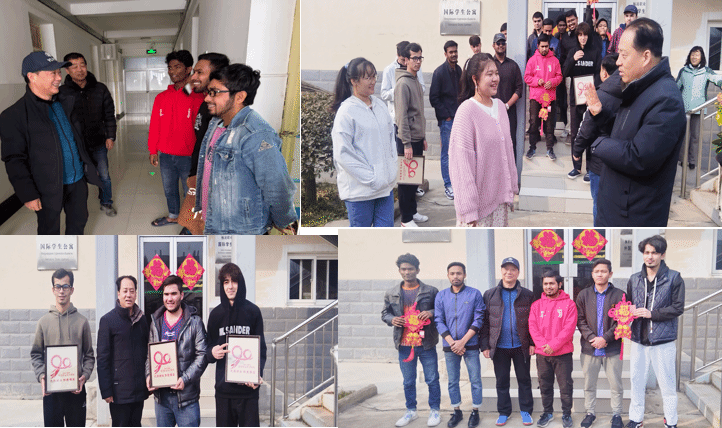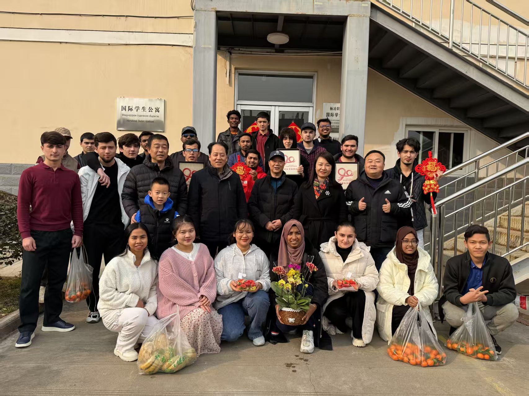 在新春佳节即将来临之际,1月22日,国际学院、机电工程学院、旅游与管理学院负责人一行前往国际学生公寓,看望慰问寒假期间留校的国际学生。建筑工程学院教师和国际学生辅导员共同慰问。