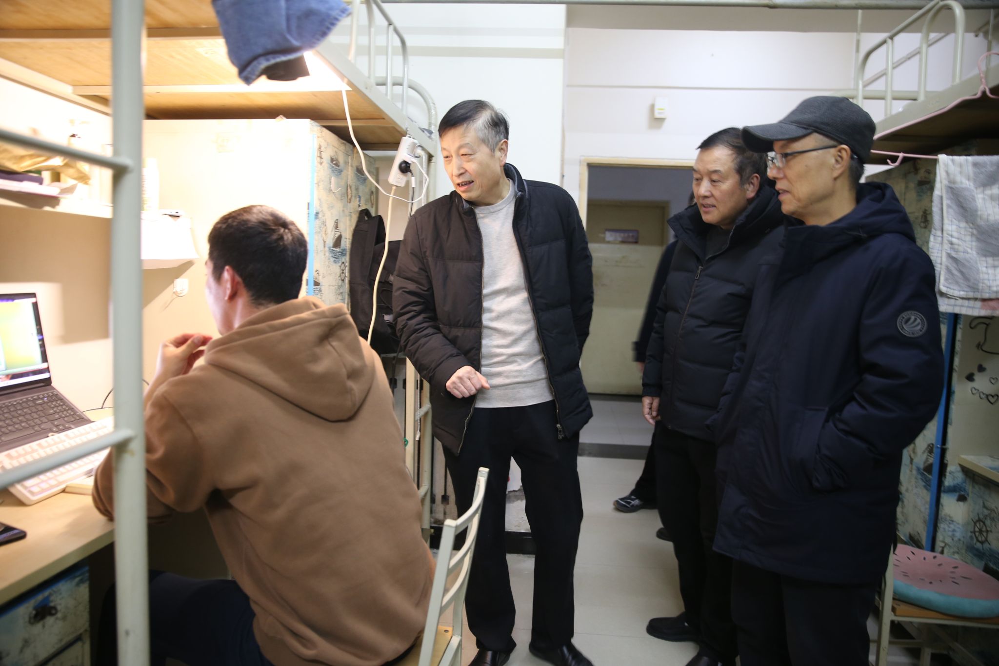 晚上,校领导分别带队深入三校区学生公寓看望返校学生,与学生们亲切交谈,询问他们的假期生活和返校后的适应情况,了解他们的生活情况和需求,并叮嘱他们注意安全,合理安排学习和生活,以饱满的精神状态迎接新学期。