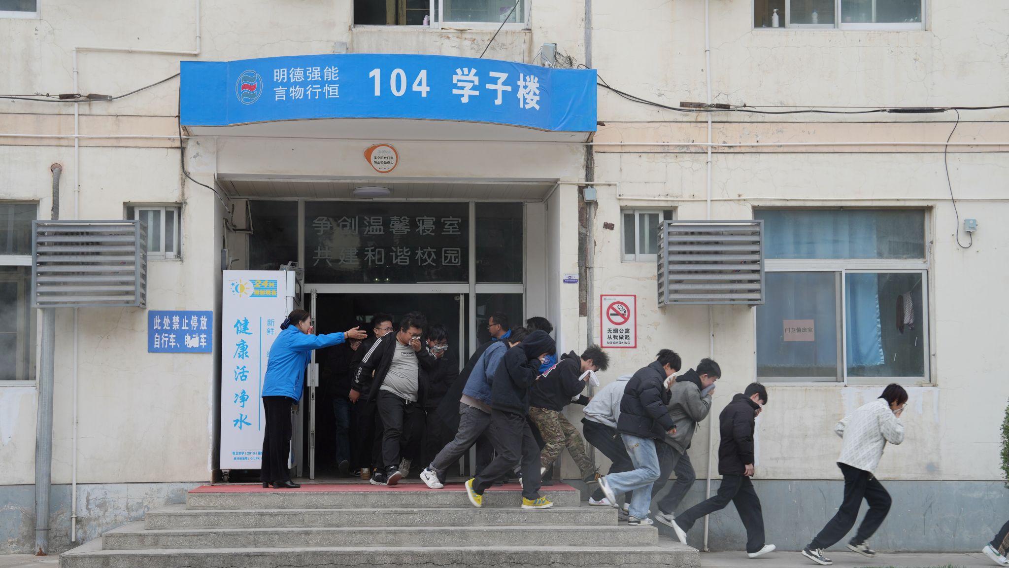 保卫处、学生处、南校区500名学生代表,104学子楼全体入住学生和辅导员,公寓楼物业公司工作人员共1100余人参与演练。