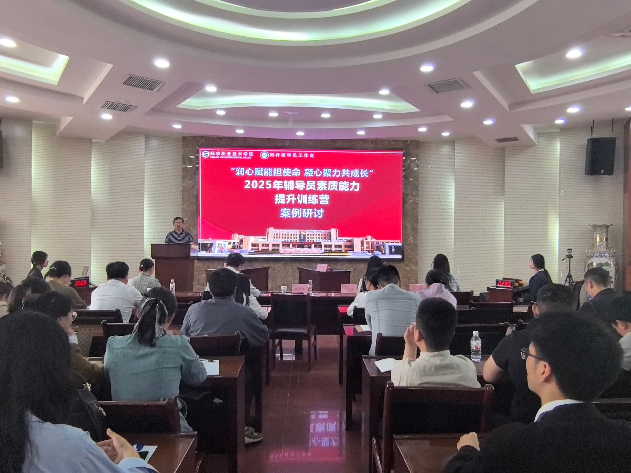 本次训练营设二级学院训练营和校级训练营。前期,各二级学院进行了学情分析和案例研讨,通过学院推荐与个人自荐,选拔出25名参训学员进入校级训练营。伟德官网学工部负责人,西北农林科技大学机械与电子工程学院党委副书记张静,全国高校辅导员素质能力提升骨干训练营“十佳标兵”王昱泽、綦玥,陕西省“表现突出辅导员”朱燕担任校级训练营评委。90余名辅导员现场观摩。