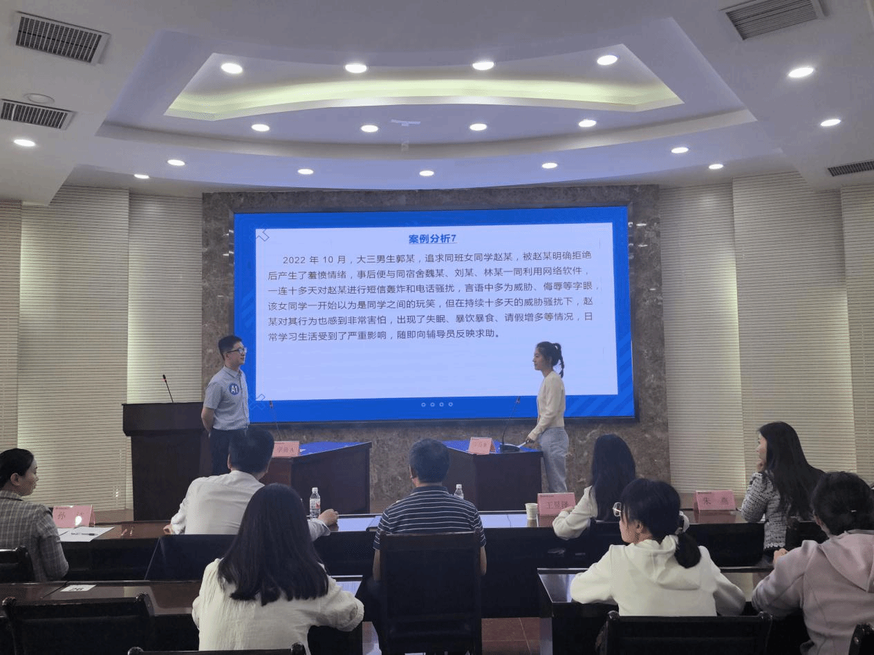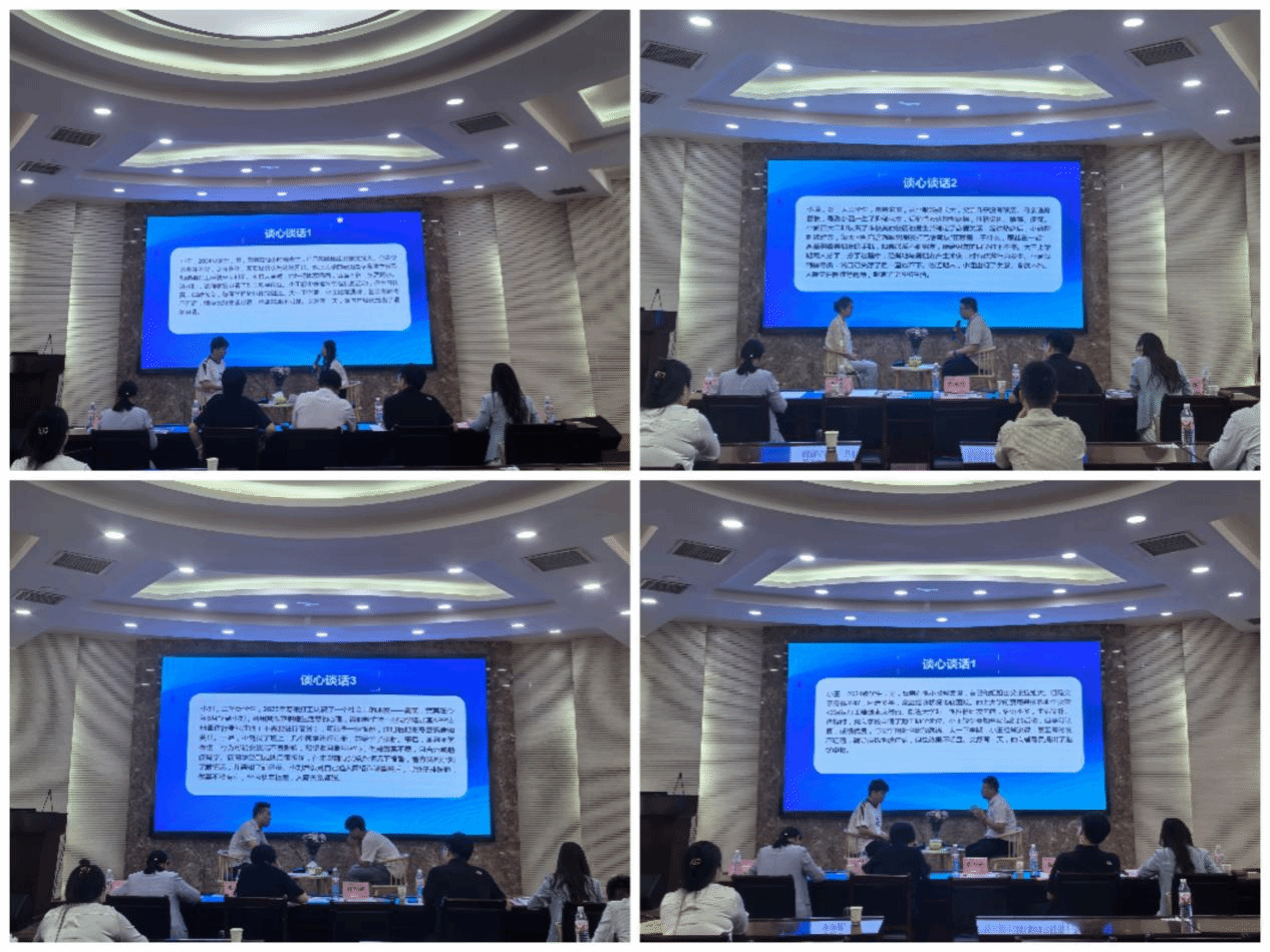 校级训练营活动包括案例研讨、谈心谈话、赋能论坛三个环节。在案例研讨环节,参训辅导员分为AB角,围绕学业、心理、人际关系、职业与生涯规划、突发事件与违纪处理等学生常见问题展开深入研讨。在谈心谈话环节,通过模拟真实场景,参训学员与学生展开深入对话,展现了扎实的专业素养和灵活的工作方法,体现了在学生思想引领、心理疏导和成长指导中的重要作用。在“赋能论坛”环节,綦玥以“学赛互促强本领 教学相长做榜样——从素质能力大赛反思辅导员素质能力提升的路径与方法”为主题,结合个人参赛经历,从赛制解读、参赛经验、工作反思、个人探索四方面详细解读了辅导员素质能力大赛的赛制要求,分享了备赛参赛过程中的心得体会。