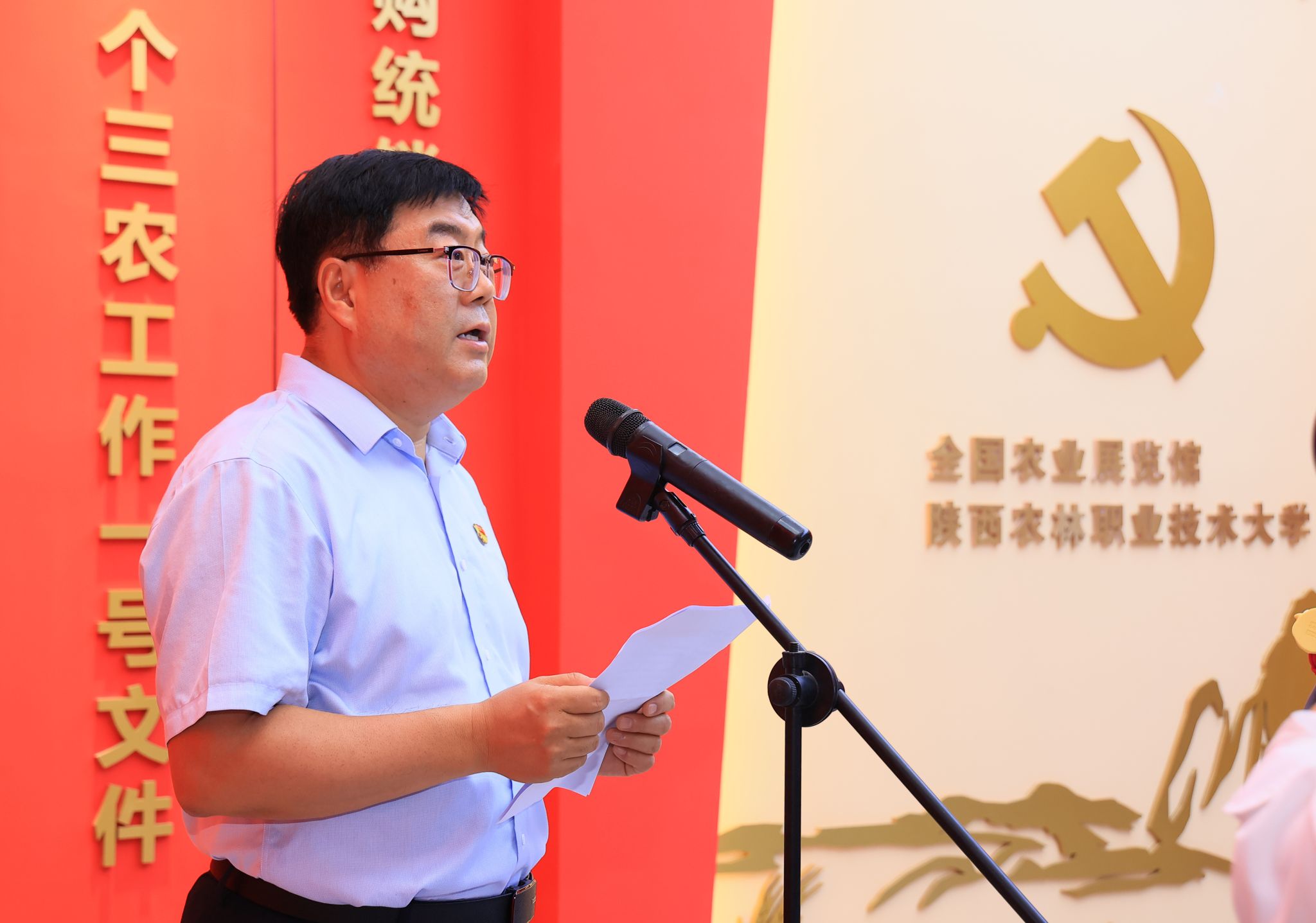 韩明军在致辞中指出,建设百年伟业·红色三农研学馆是学校深入学习贯彻习近平总书记关于“三农”工作重要论述的重要体现。他表示,学校将以研学馆为平台,教育引导广大师生深入了解中国共产党解决“三农”问题的光辉历程,厚植“三农”情怀,不忘初心使命,勇挑强农兴农重担。作为庆祝中国共产党成立100周年主题展巡展点、全省农村基层干部培训基地、杨凌示范区研学教育实践基地,研学馆将积极主动服务杨凌示范区发展,服务、辐射全省、全国旱区乃至全国党员干部、大中小学生的红色三农教育工作,凝聚更加强大的力量,为农业高质高效、乡村宜居宜业、农民富裕富足作出更大的贡献。
