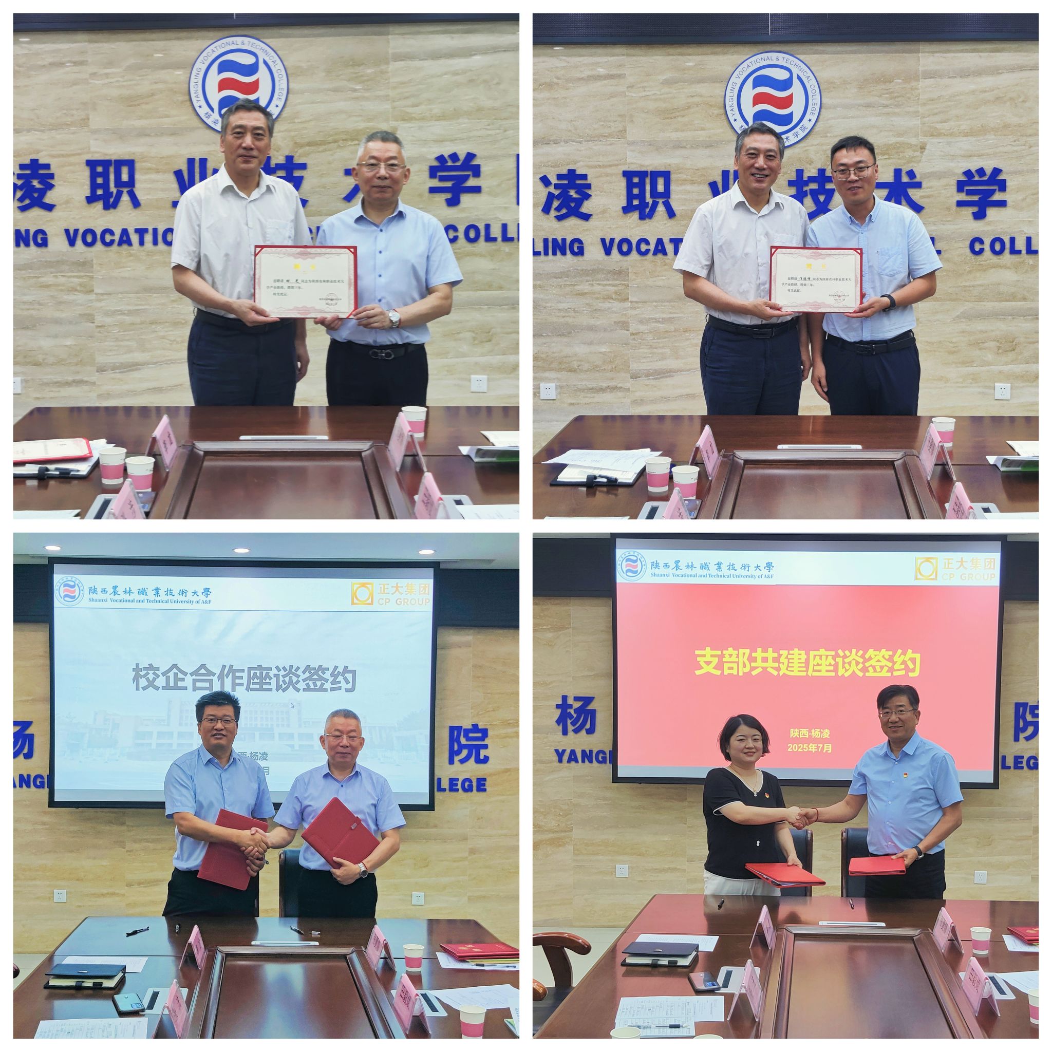 中共陕西正大食品有限公司支部委员会支部书记田毅斌、陕西区人力资源总监吴晓炜、人力资源线雇主品牌总监张夏娜,伟德官网动物工程学院负责人、动物医学党支部书记、陕西正大奶山羊产业发展有限公司外聘兽医技术顾问参加。