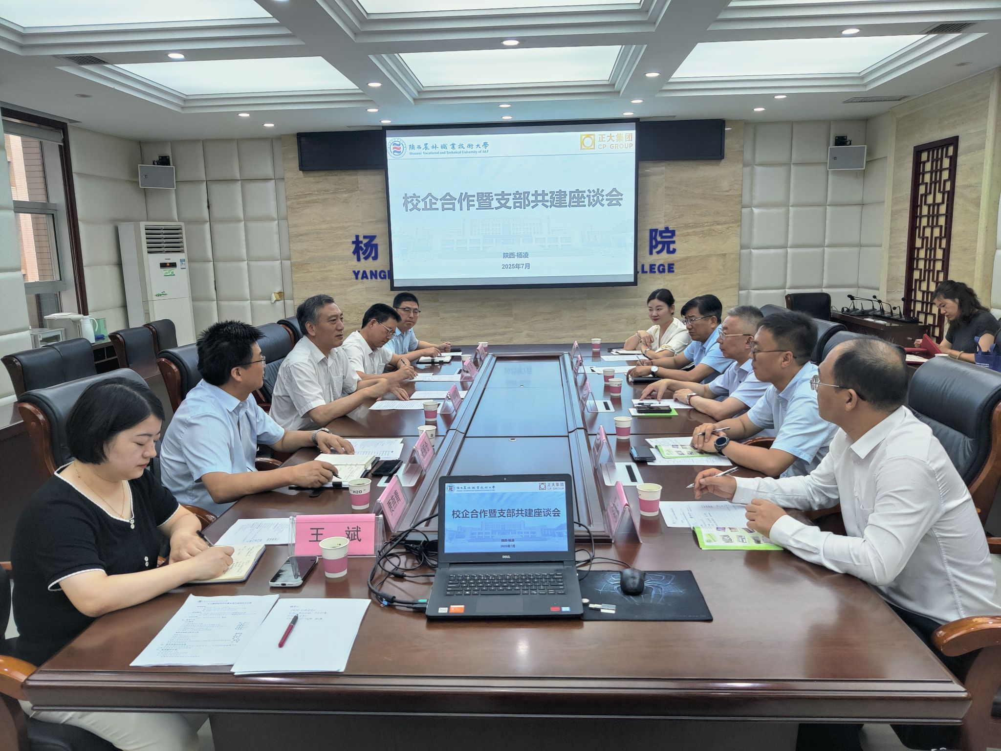 7月3日上午,正大集团陕西区总裁时光、猪事业标准与生产管理副总裁汪德明一行来校洽谈校企合作和支部共建等工作。校党委书记韩明军出席。