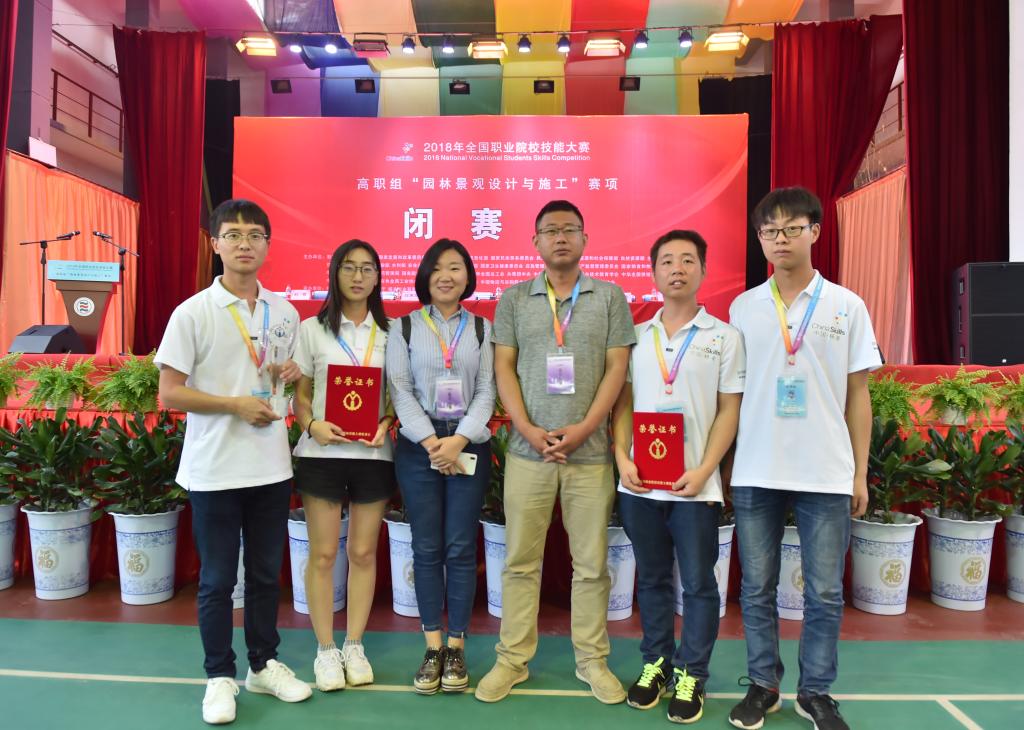 经过两天紧张激烈的比赛,6月11日上午,2018年全国职业院校技能大赛(高职组)“园林景观设计与施工”赛项闭赛式在我院举行。由我院丁玉洁、朱文涛、何伟伟、李俊4名学生组成的代表队,在本次赛项中取得了一等奖的好成绩。