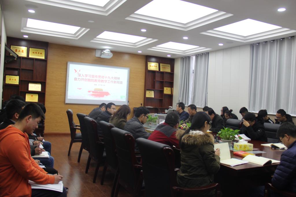 12月6日,学院副院长张迪以“深入学习宣传贯彻党的十九大精神 奋力开创我院教育教学工作新局面”为题,为机电工程分院教工党员和发展对象讲专题党课。