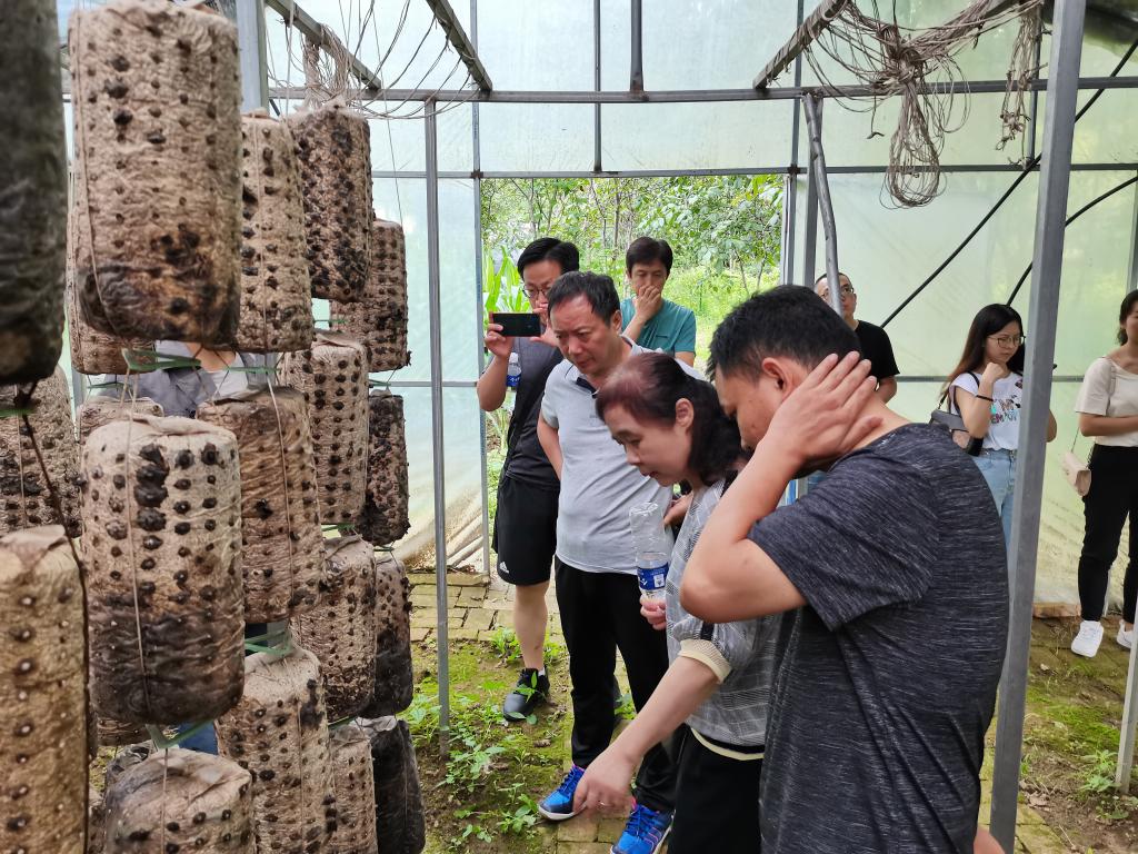 活动中,大家还参观了我院援建的食用菌产学研一体化示范基地,了解了基地食用菌种植、产出、收入等情况。