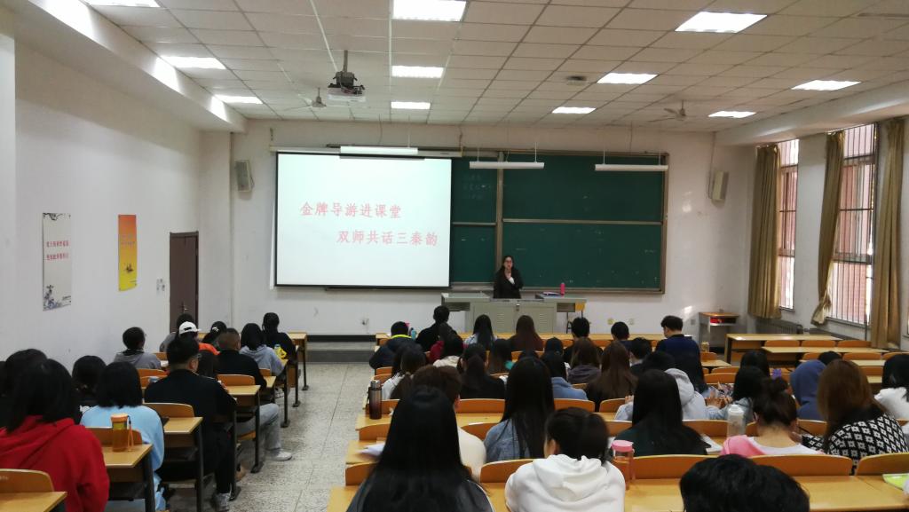 11月6日,旅游与管理分院“史丽宁技能大师工作室”系列活动——“金牌导游进课堂 双师共话三秦韵”活动在北校区举行。国家高级导游、国家旅游局万名旅游英才计划金牌导游、伟德官网外聘教师史丽宁作题为“成功导游的素质与修炼”的报告。旅游与管理分院副院长问建军、旅游管理专业全体师生共180余人聆听了讲座。