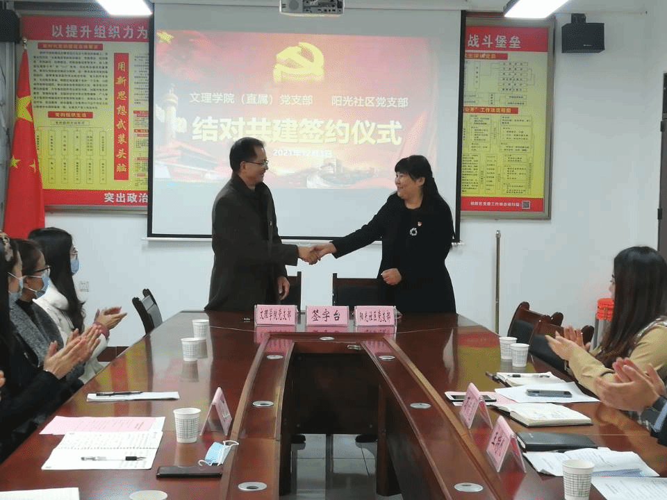 会上,王云江和万传慧分别介绍了本支部党建工作基本情况,并签订了《结对共建协议》。王云江说,两个支部通过搭建党建工作创新平台,开展政治学习、红色教育、主题党日、文体娱乐、志愿服务、业务培训等活动,能更好的贯彻落实“党史学习教育”、推动“区校融合”,更有利于实现两个支部优势互补,发挥党支部战斗堡垒作用,提高两个支部党建工作的针对性和实效性。万传慧希望,两个党支部能以此为契机,依托共建活动,加强沟通联络,发挥各自优势,相互借鉴,互相学习,切实发挥好基层党支部服务与育人的作用。