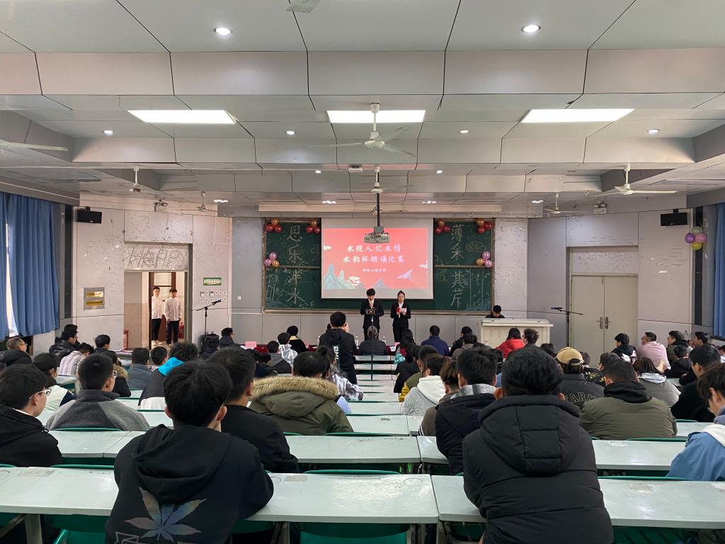 近日,水利工程学院在北校区开展“水院人·忆水情”水韵杯诗歌朗诵竞赛。