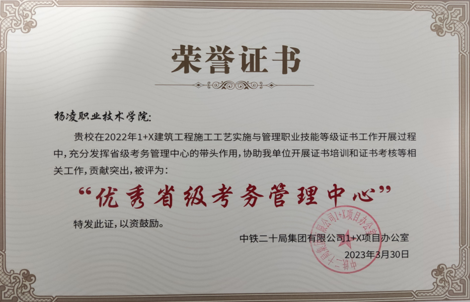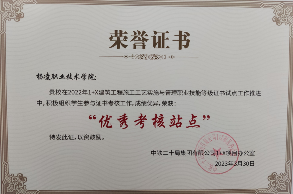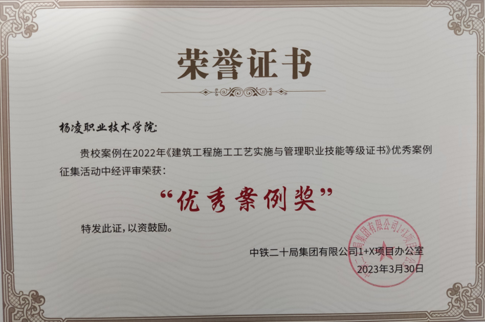 在2022年度“1+X”试点工作中,伟德官网建筑工程学院高度重视,认真组织,积极推进证书考核工作,先后组织10名专业骨干教师参加师资培训,获得考评员证书及师资培训证书,并将建筑工程施工工艺实施与管理证书标准融入建筑工程技术专业人才培养方案,积极推进“岗课赛证”融通,提高了人才培养的适应性和针对性。同时,加强考试组织培训工作,组织了4期试点考核工作,共计135人次参加考核,通过率97%,远高于全国和全省平均通过率,被证书评价机构授予2022年度“优秀省级考务管理中心”和“优秀考核站点”。学校“扎实推进课证融通 持续深化三教改革”典型教学案例获优秀案例奖,教师杨益获“优秀教师”称号。