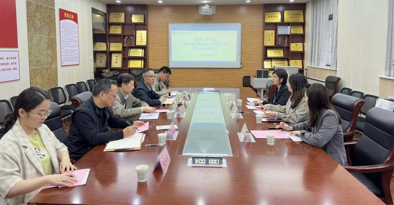 5月25日下午,陕西秦深维创实业有限公司总裁助理杨培培、人事主管刘菲、田媛一行来校开展座谈交流。副校长祝战斌、机电工程学院党总支书记马秀魁、院长龙建明等参加座谈。