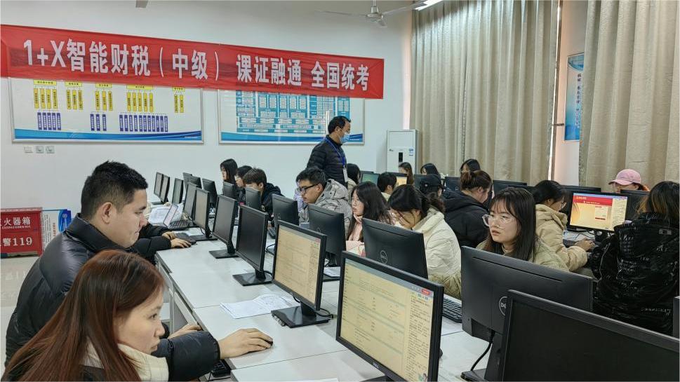 1月2日,学校举行“1+X”智能财税职业技能等级证书(中级)课证融通全国统考,经济与贸易学院2021级大数据与会计专业30名学生参加考试。
