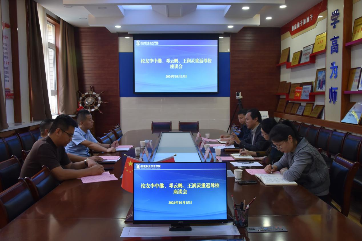 10月15日,生态环境工程学院举办优秀校友“回家·分享·建言”座谈会。陕西中驰建设工程有限公司董事长、杨凌职业技术学院创业联盟副会长李中继,西安碧水源环保设备有限公司、陕西中慧建筑工程有限公司董事长、杨凌职业技术学院创业联盟秘书长邓云鹏,陕西众成源工程技术有限公司总经理王润灵等校友返校,参加座谈。生态环境工程学院负责人等参加会议。