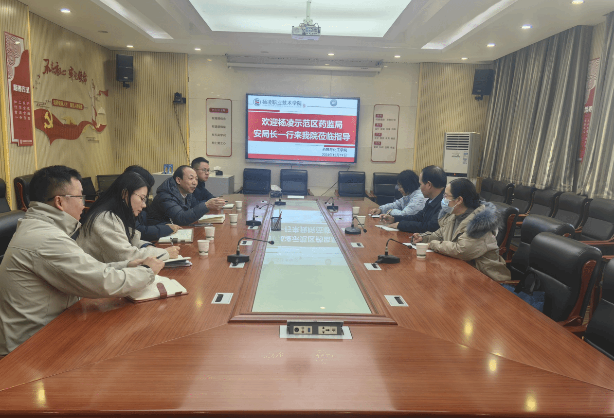 12月19日上午,杨凌示范区药监局副局长安兴国一行到药物与化工学院调研交流。药物与化工学院负责人陪同调研。