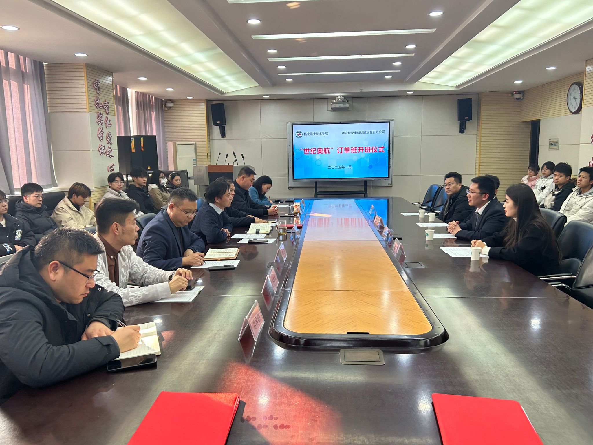 1月2日,交通与测绘工程学院与西安世纪奥航轨道运营有限公司在水韵楼三楼会议室举行订单班开班暨捐赠仪式。中铁十二局集团铁路养护工程有限公司人力资源部副部长马秦元,西安世纪奥航轨道运营有限公司董事长雷和国、总经理韩雪、校企合作部部长邹成斌,交通与测绘工程学院负责人、学工办主任,及订单班全体学生参加了开班仪式。