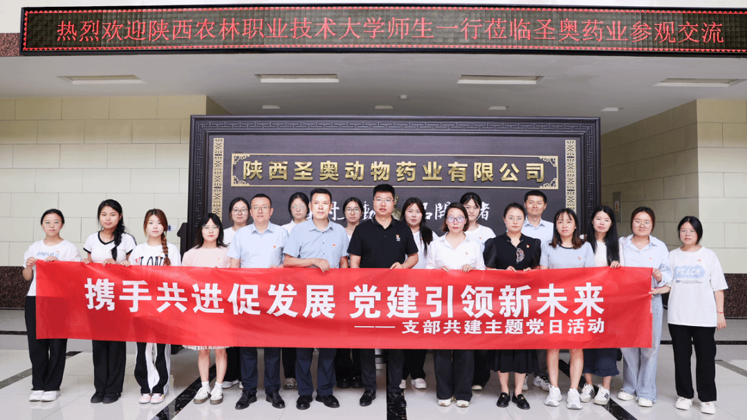 为充分发挥基层党组织战斗堡垒作用,凝聚校企协同发展合力,7 月 3 日,学校药物与化工学院药品经营党支部与陕西圣奥动物药业有限公司党支部联合举办“携手共进促发展 党建引领新未来” 支部联建主题党日活动。双方党员代表30 余人参加。