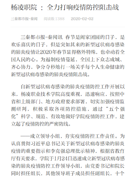 【三秦都市报】杨凌职院 :全力打响疫情防控阻击战
