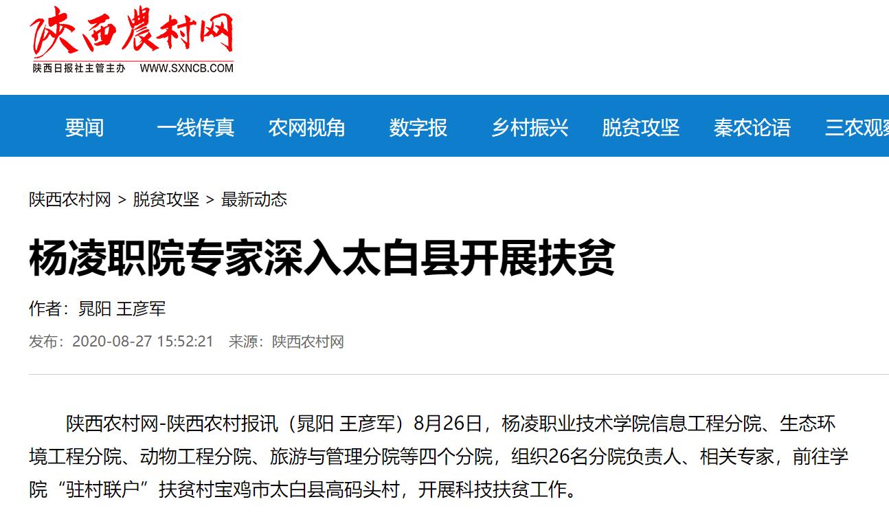 陕西农村网-陕西农村报讯(晁阳 王彦军)8月26日,杨凌职业技术学院信息工程分院、生态环境工程分院、动物工程分院、旅游与管理分院等四个分院,组织26名分院负责人、相关专家,前往学院“驻村联户”扶贫村宝鸡市太白县高码头村,开展科技扶贫工作。