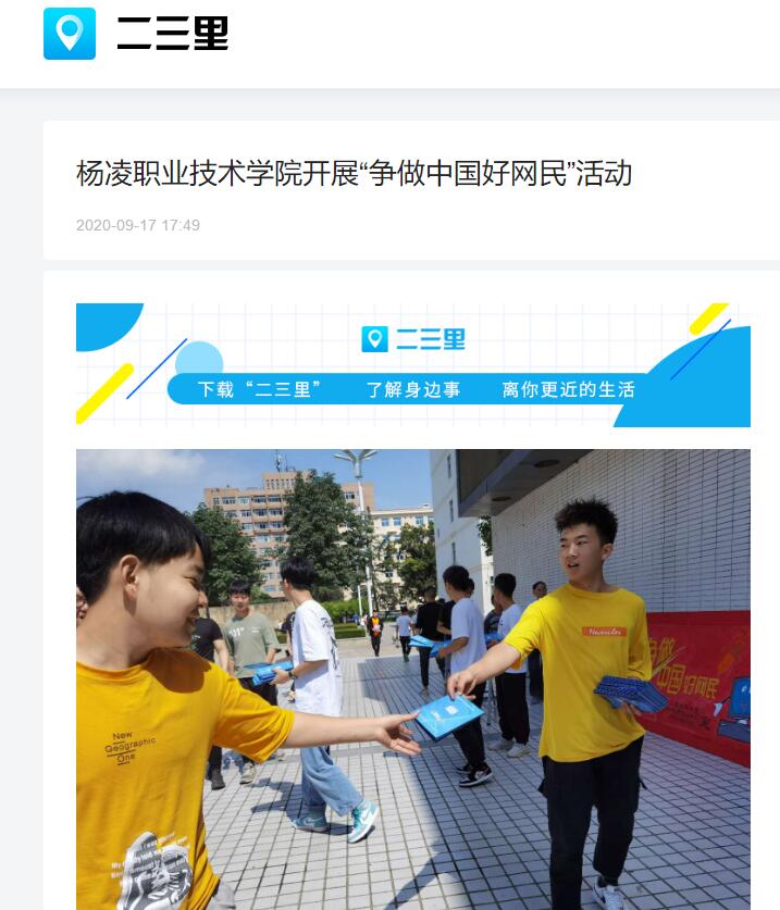 本周是陕西省第七届国家网络安全宣传周,为进一步教育引导学院师生共同抵制网络不法行为,自觉维护健康文明的网络环境,积极营造健康向上的网络文明氛围,推动互联网空间天朗气清,9月17日,杨凌职业技术学院党委宣传部、网络教育技术中心、水利工程分院联合举办“争做中国好网民”活动。