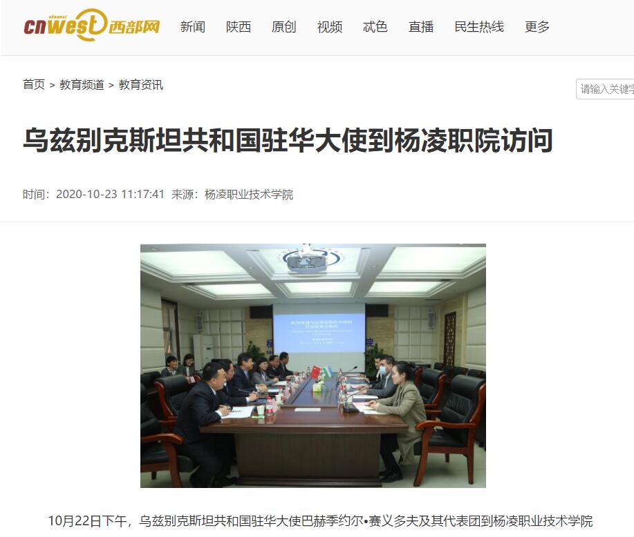 杨凌职业技术学院校长王周锁向大使一行简要介绍了学校的基本情况。他指出,为配合两国政府在乌兹别克斯坦建立现代农业科技园区建设工作,杨凌职院愿意在以下三个方面与乌兹别克斯坦开展合作:一是在园区建立杨凌职业技术学院现代农业技术推广基地,开展干旱与半干旱现代农业技术教育与技术推广,在良种推广、节水灌溉、水土保持等方面提供技术与人才支持。二是选派学校的农业专家和教师在园区开展现场技术指导。三是为乌兹别克斯坦现代农业园区培养现代农业技术人才。同时,学校也愿意与乌兹别克斯坦在多个方面开展文化与教育交流,也欢迎乌兹别克斯坦的相关院校师生来到杨凌职院访问。