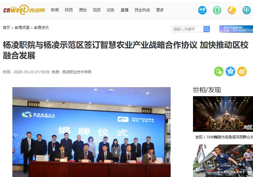 【西部网】杨凌职院与杨凌示范区签订智慧农业产业战略合作协议加快推动区校融合发展
