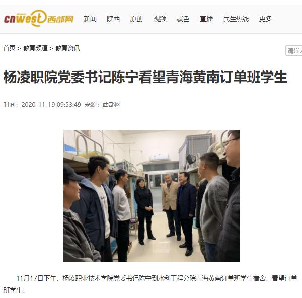 11月17日下午,杨凌职业技术学院党委书记陈宁到水利工程分院青海黄南订单班学生宿舍,看望订单班学生。