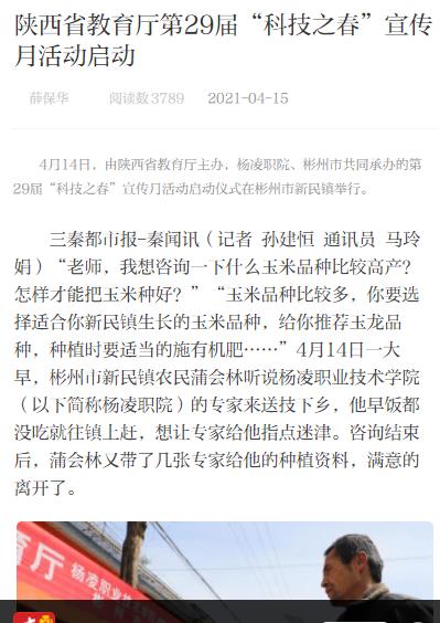 【三秦都市报】陕西省教育厅第29届“科技之春”宣传月活动启动
