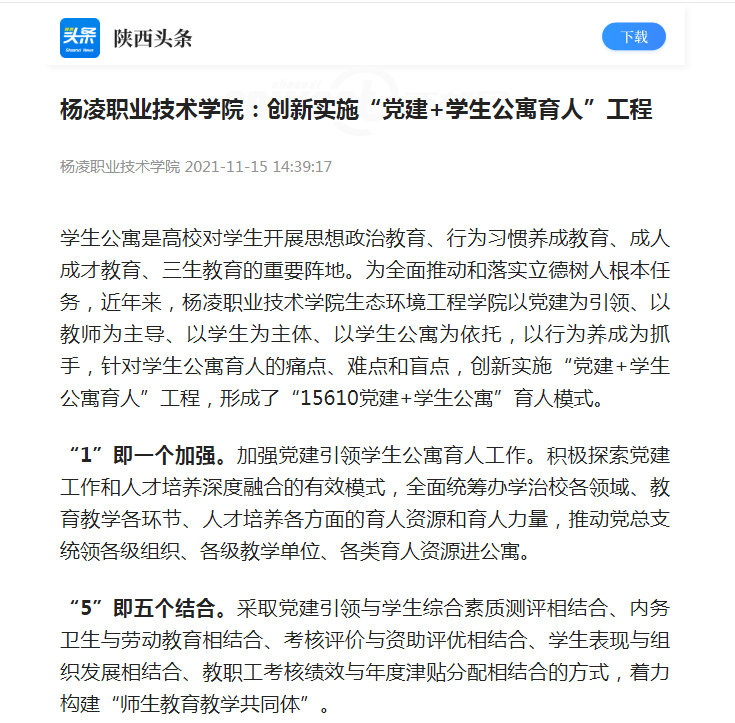 【陕西头条】杨凌职业技术学院:创新实施“党建+学生公寓育人”工程